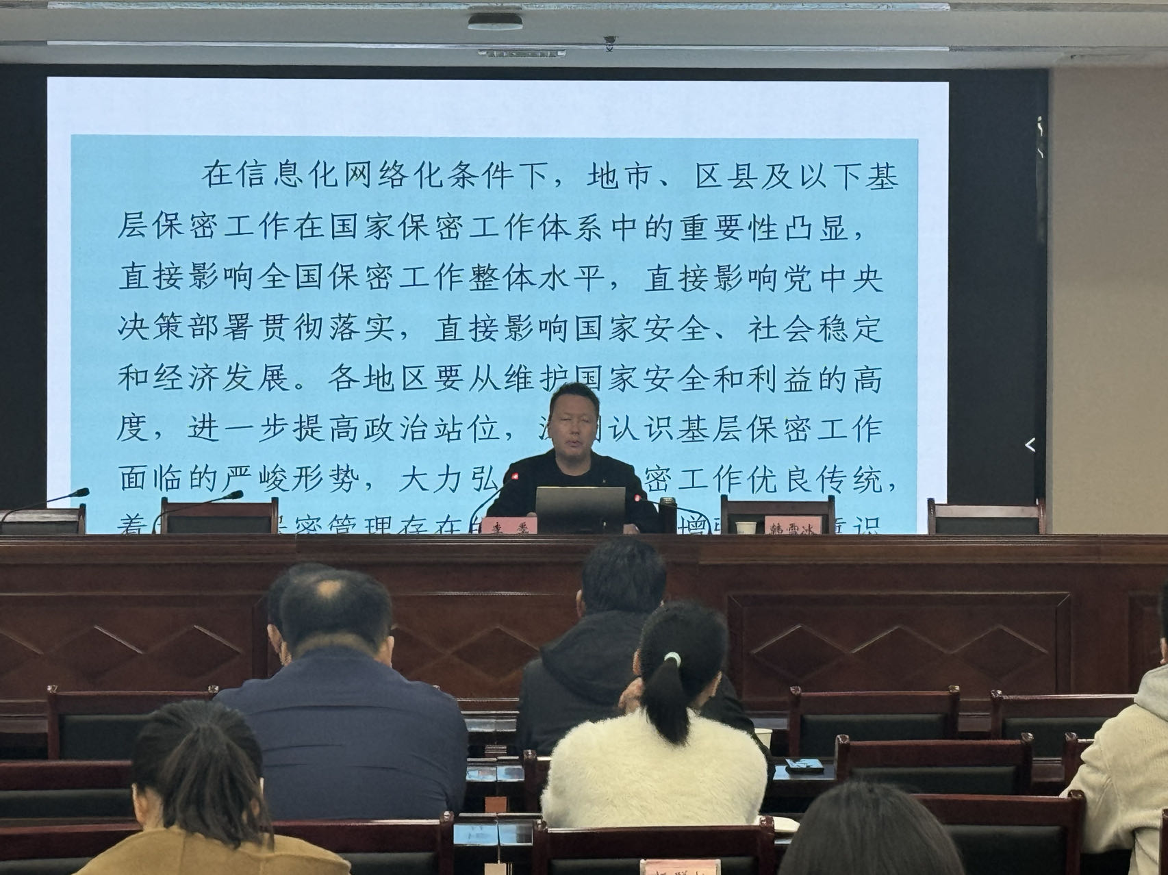 此次培訓(xùn)邀請市委辦保密管理科科長李季給大家授課,李季科長從當(dāng)前竊密與反竊密斗爭形勢、機關(guān)和單位保密管理存在的問題、當(dāng)前基層保密工作重點任務(wù)、機關(guān)和單位保密工作基本要求,圍繞保密工作的基本知識、保密日常管理、定密管理、涉密人員管理以及如何避免12種失泄密違規(guī)行為等進(jìn)行了詳細(xì)講解。